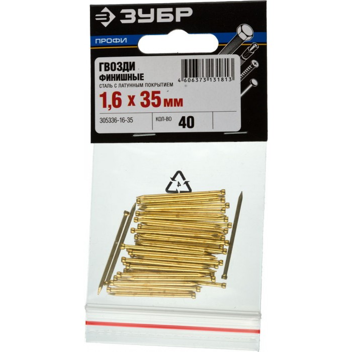 Гвозди финишные 35?1.6 мм 40 шт латунированные ЗУБР Профессионал 305336-16-35