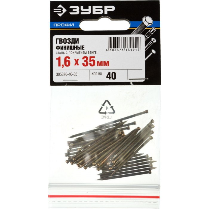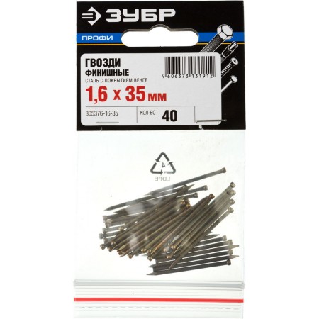 Гвозди финишные 35?1.6 мм 40 шт венге ЗУБР Профессионал 305376-16-35