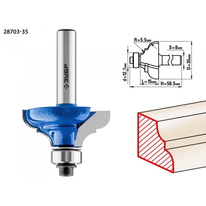 Фреза кромочная калевочная №3 35?17 мм радиус 5.5 мм ЗУБР Профессионал 28703-35