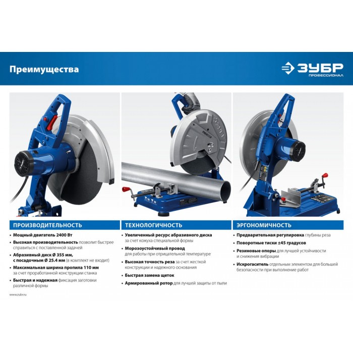 Пила отрезная (монтажная) по металлу 355 мм 2400 Вт абразив Профессионал ЗУБР ПО-355