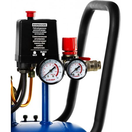 - Контроль давления в ресивере и на выходе при помощи двух манометров