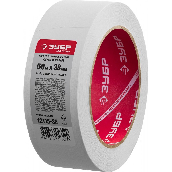 ЗУБР 38 мм х 50 м, креповая, малярная лента, МАСТЕР (12115-38)