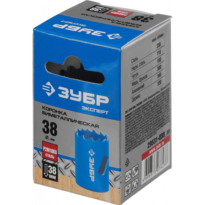 Коронка биметаллическая 38 мм, сталь Р6М5 ЗУБР 29531-038_z01