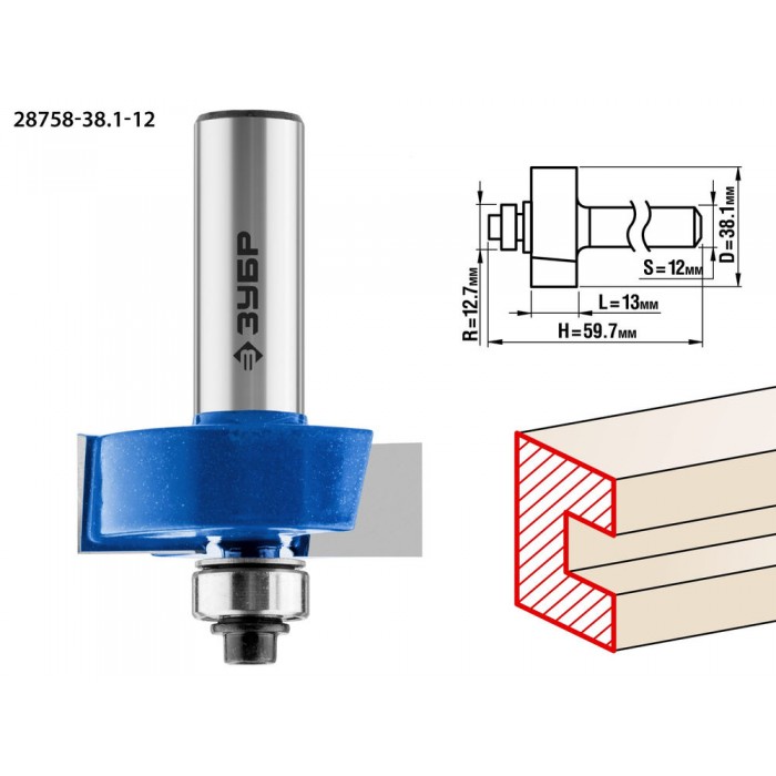Фреза фальцевая 38.1?13 мм хвостовик 12 мм ЗУБР Профессионал 28758-38.1-12
