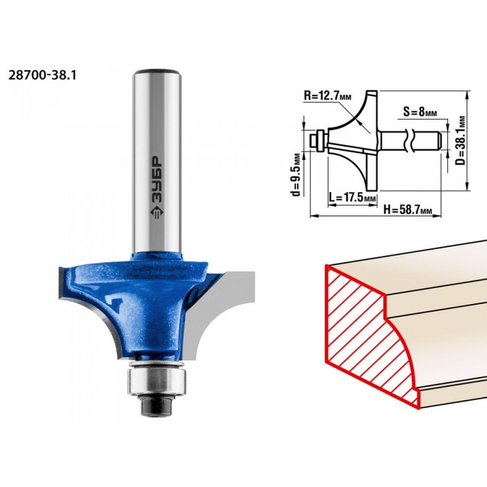 Фреза кромочная калевочная №1 38.1?17.5 мм радиус 12.7 мм ЗУБР Профессионал 28700-38.1