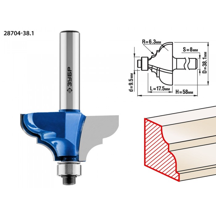 Фреза кромочная калевочная №3 38.1?17.5 мм радиус 6.3 мм ЗУБР Профессионал 28704-38.1