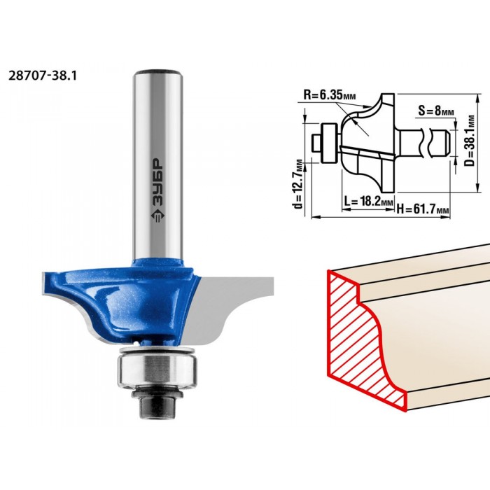 Фреза кромочная калевочная №6 38.1?18 мм радиус 6.3 мм ЗУБР Профессионал 28707-38.1