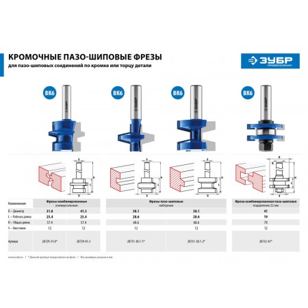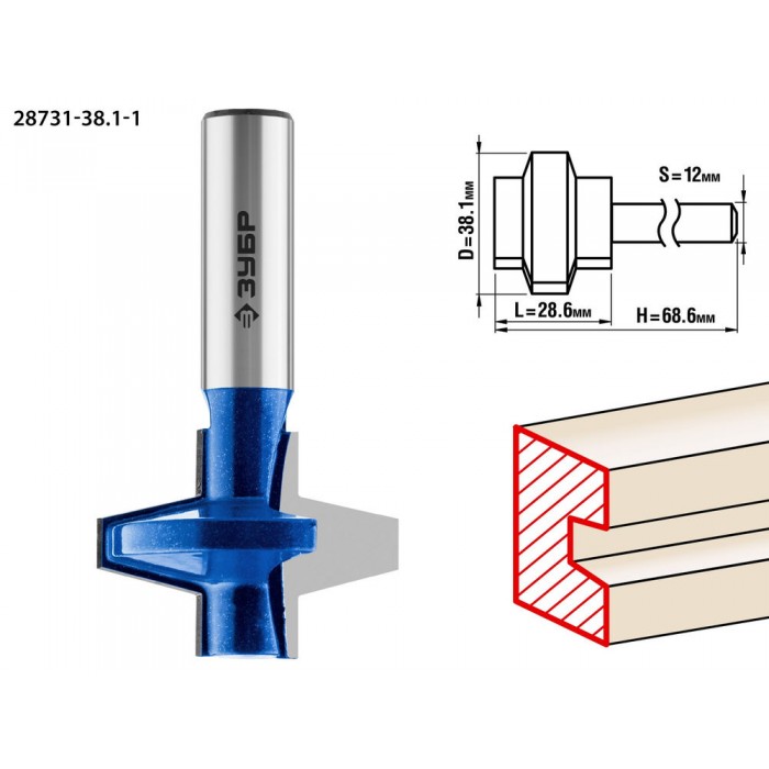Фреза пазо-шиповая наборная 38.1?28.6 мм хвостовик 12 мм ЗУБР Профессионал 28731-38.1-1
