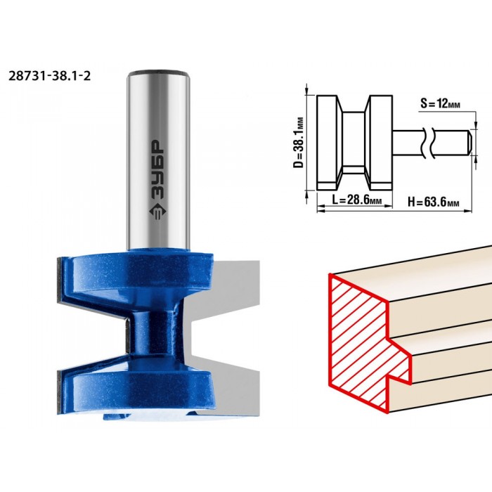 Фреза пазо-шиповая наборная 38.1?28.6 мм хвостовик 12 мм ЗУБР Профессионал 28731-38.1-2