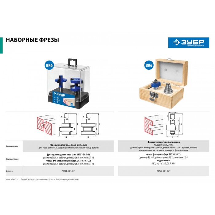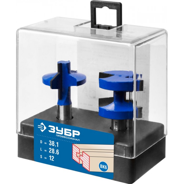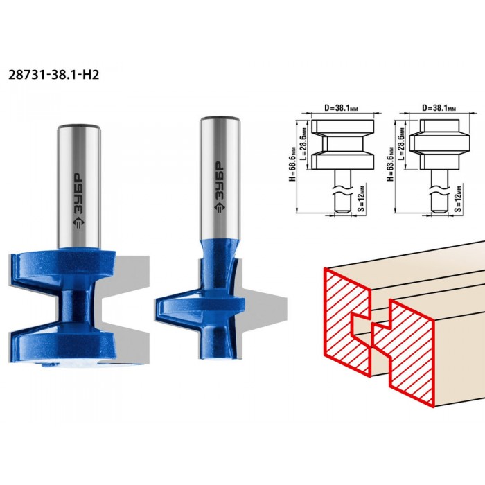 Набор фрез пазо-шиповых 38.1?28.6 мм хвостовик 12 мм ЗУБР Профессионал 28731-38.1-H2