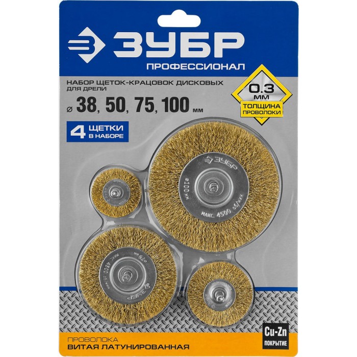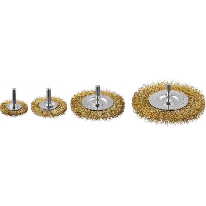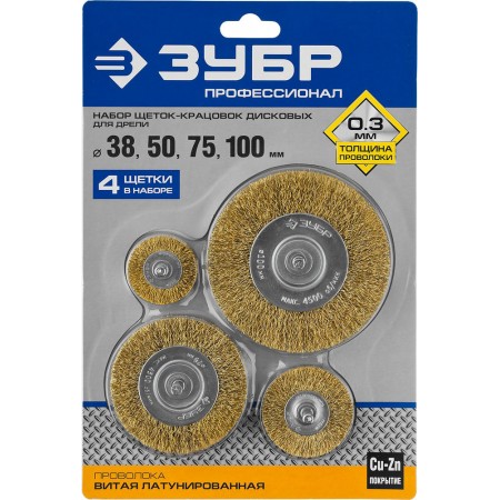 Набор дисковых щёток-крацовок для дрели 38/50/75/100 мм, витая латунированная стальная проволока ЗУБР Профессионал 3521-H4_z03