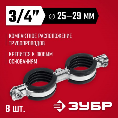 ЗУБР 3/4?, цинк, 8 шт, двойной трубный хомут (37890-25-29)