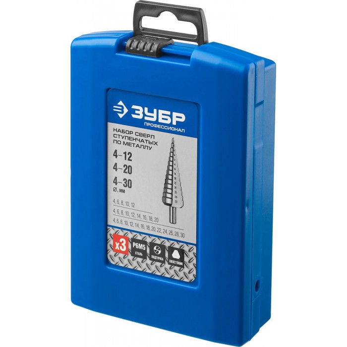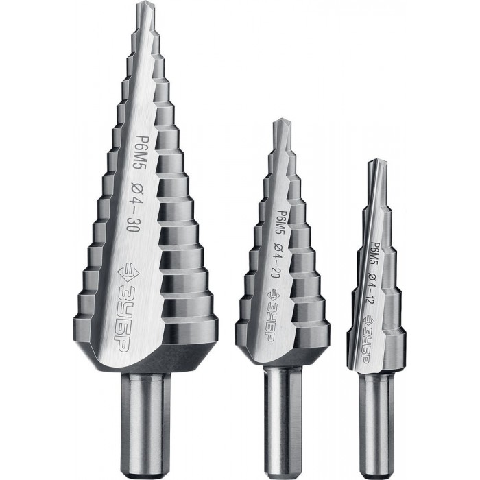 Набор ступенчатых сверл 4–30 мм, 3 шт, сталь Р6М5 ЗУБР Профессионал 29670-4-30-H3_z01