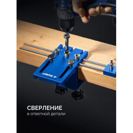 Мультифункциональный кондуктор позиционирует сверло, обеспечивая точность сверления отверстий под шканты и эксцентриковые стяжки. Использование кондукторов значительно ускоряет и облегчает процесс соединения деревянных деталей.