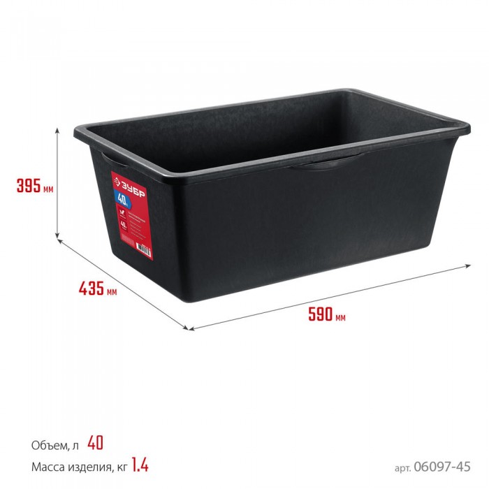 Таз строительный прямоугольный 40 л ЗУБР 06097-45_z03