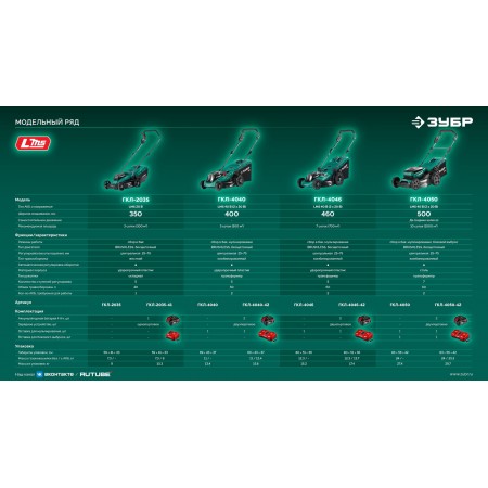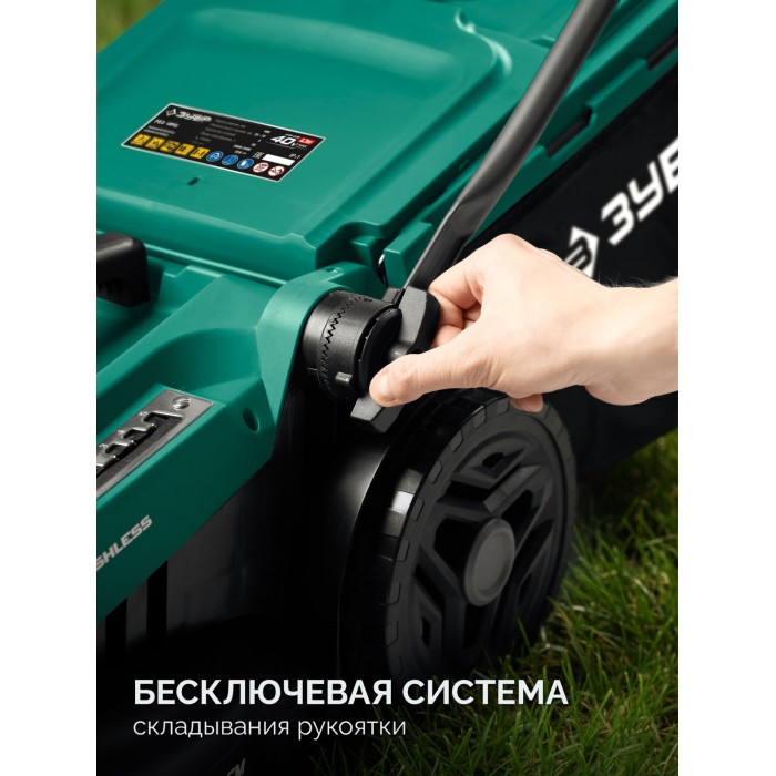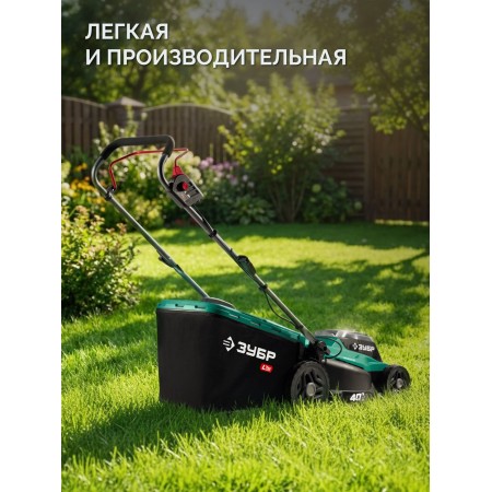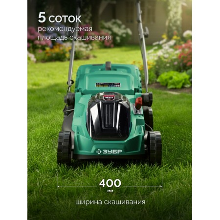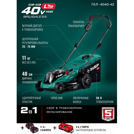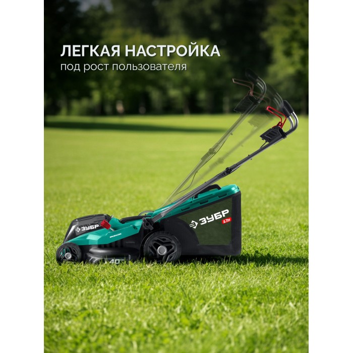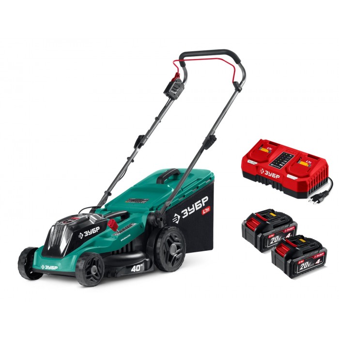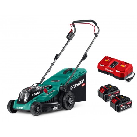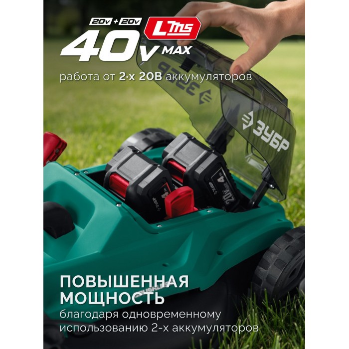 ЗУБР 40 В (2x20В), 400 мм, 2 АКБ LMS (4 Ач), газонокосилка аккумуляторная бесщеточная (ГКЛ-4040-42)