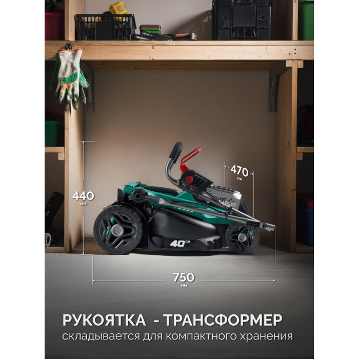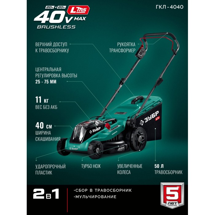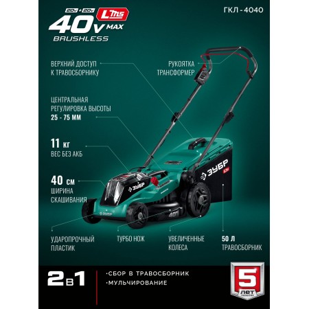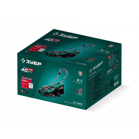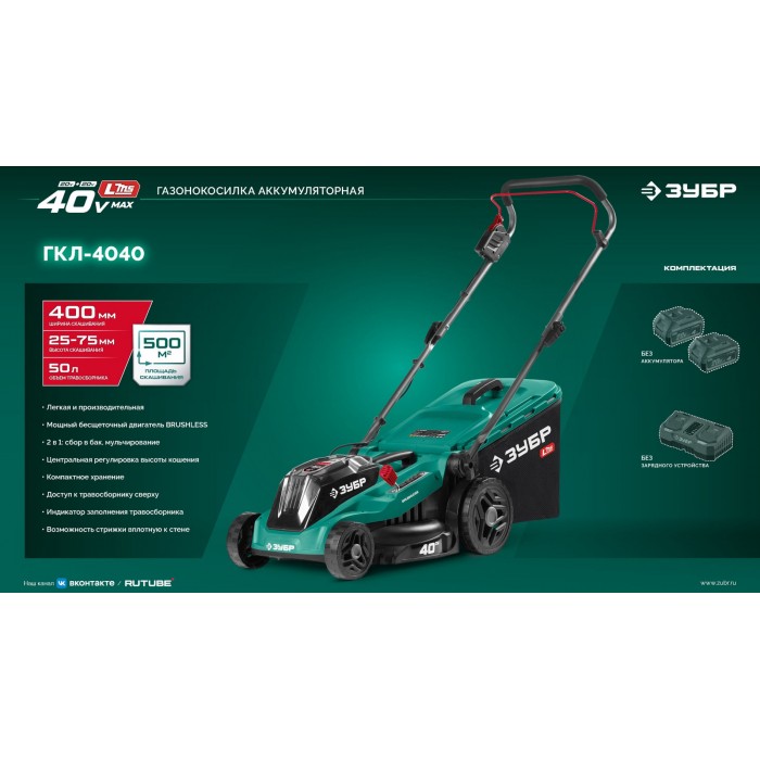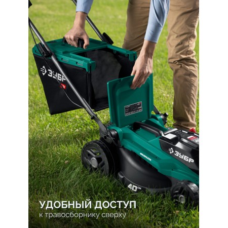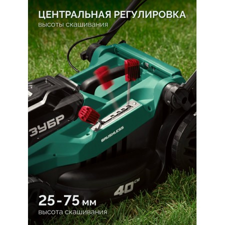 ЗУБР 40 В (2x20В), 400 мм, без АКБ (LMS), газонокосилка аккумуляторная бесщеточная (ГКЛ-4040)