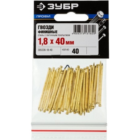 Гвозди финишные 40?1.8 мм 40 шт латунированные ЗУБР Профессионал 305336-18-40