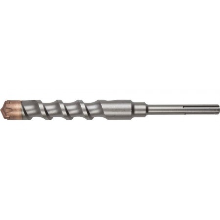 - Специальная крестообразная геометрия наконечника предотвращает подклинивание и смещение бура при работе в сверхпрочных материалах.