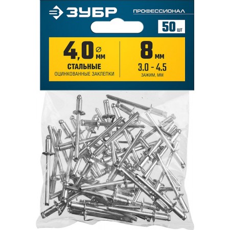 Заклёпки стальные 4.0?8 мм 50 шт ЗУБР Профессионал 313126-40-08