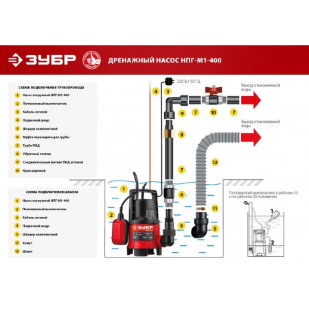 - Поплавковый выключатель обеспечивает автоматическое вкл/выкл при изменении уровня воды
