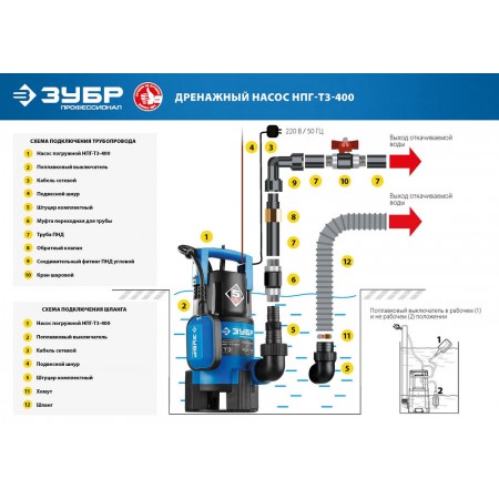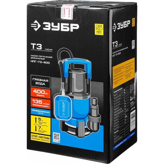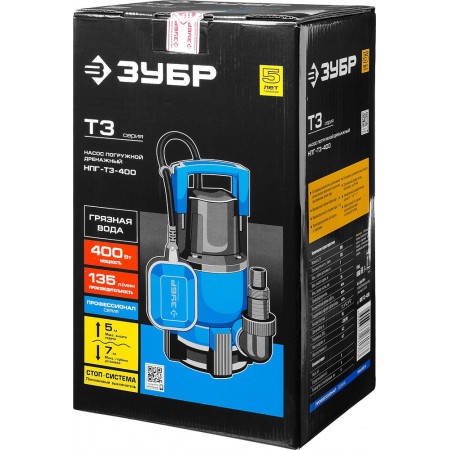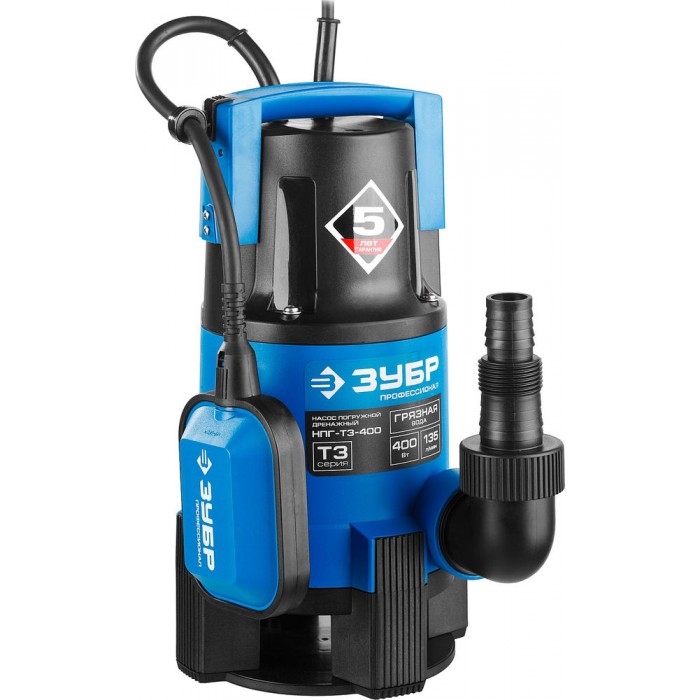 Насос дренажный для грязной воды 400 Вт ЗУБР Профессионал НПГ-Т3-400