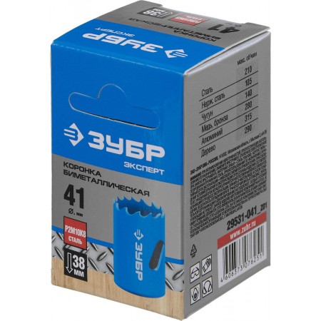 Коронка биметаллическая 41 мм, сталь Р6М5 ЗУБР 29531-041_z01