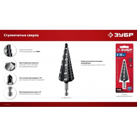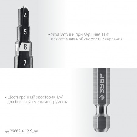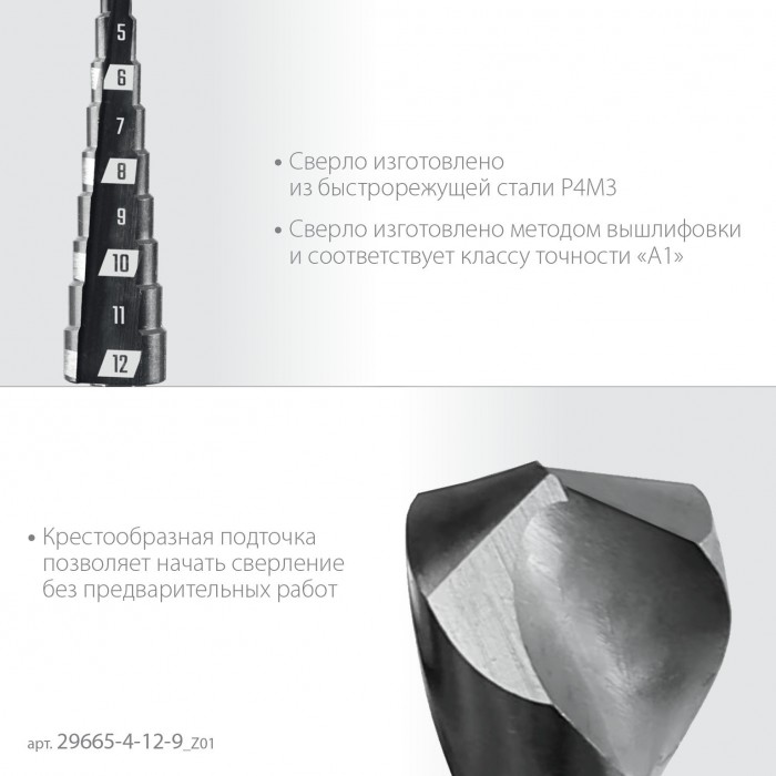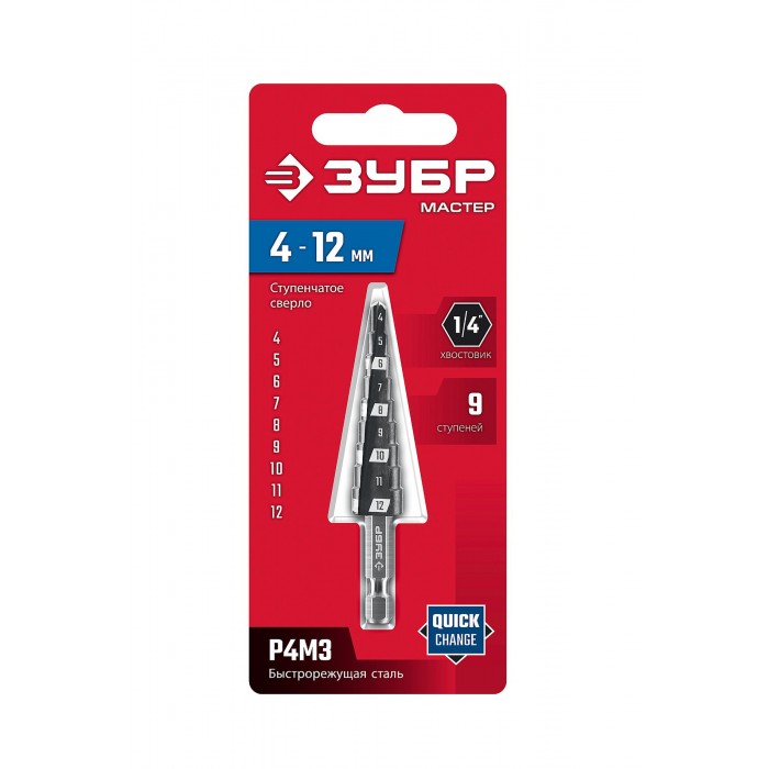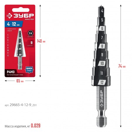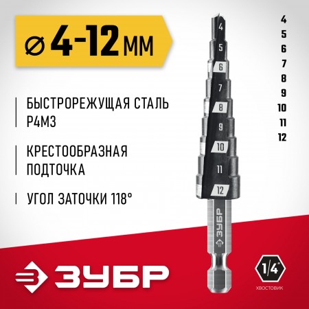 ЗУБР 4-12мм, 9 ступеней, сверло ступенчатое (29665-4-12-9_z01)