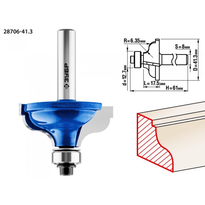 Фреза кромочная калевочная №5 41.3?18 мм радиус 6.3 мм ЗУБР Профессионал 28706-41.3