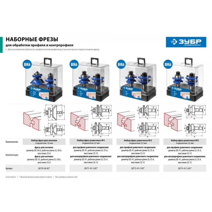 Набор фрез рамочных 41.3?23 мм №1 хвостовик 12 мм ЗУБР Профессионал 28771-41.3-H2