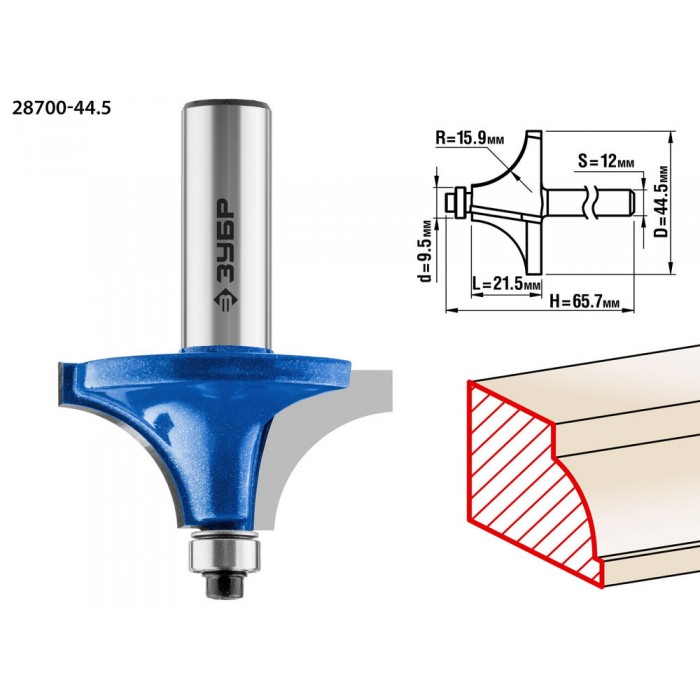 Фреза кромочная калевочная №1 44.5?21.5 мм радиус 15.9 мм ЗУБР Профессионал 28700-44.5