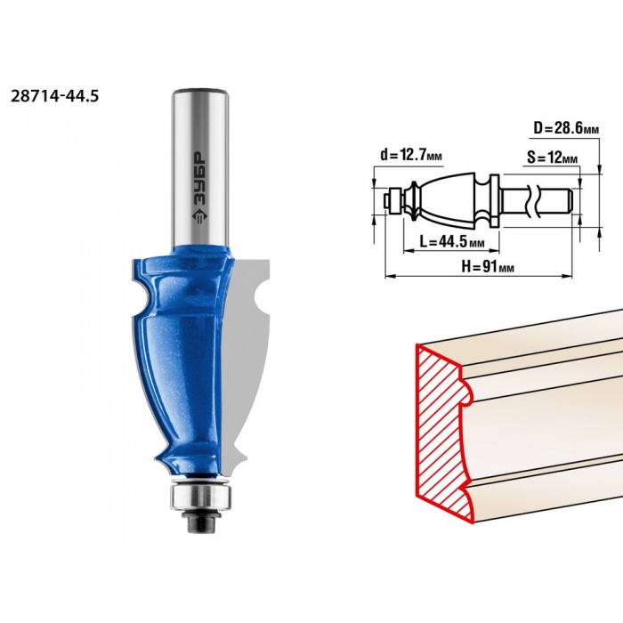 Фреза кромочная фигурная №3 44.5?28 мм хвостовик 12 мм ЗУБР Профессионал 28714-44.5