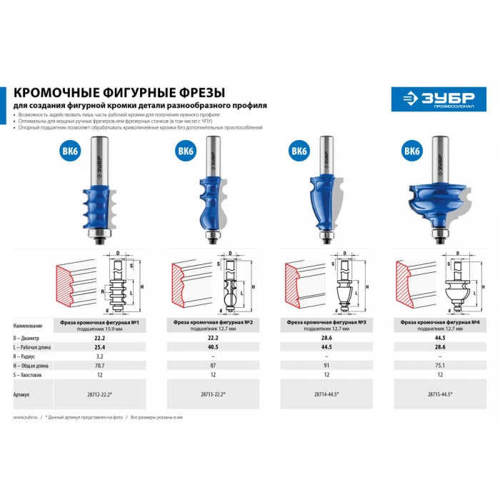 Фреза отлично подходит для изготовления фигурных кромок и торцев деталей при обработке различных видов древесины.