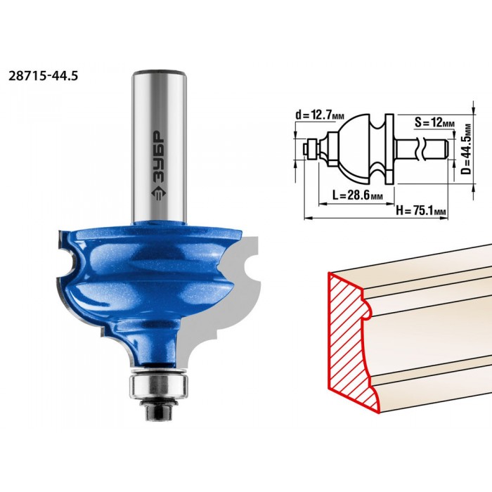 Фреза кромочная фигурная №4 44.5?28 мм хвостовик 12 мм ЗУБР Профессионал 28715-44.5