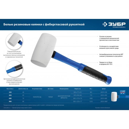 Киянка резиновая 450 г белая Профессионал ЗУБР 20531-450