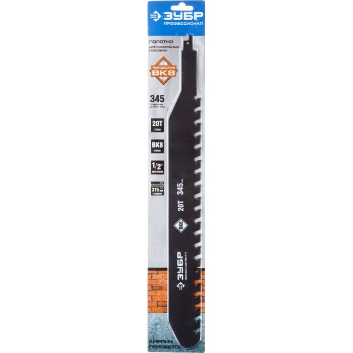 Полотна ЗУБР для сабельных электроножовок изготовлены из качественной высокоуглеродистой стали с использованием высокоточных технологий заточки твердосплавных зубьев.