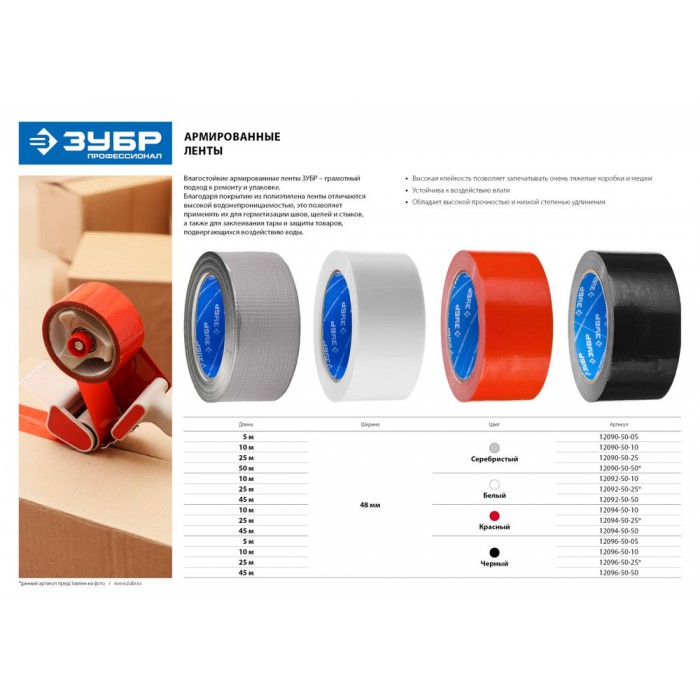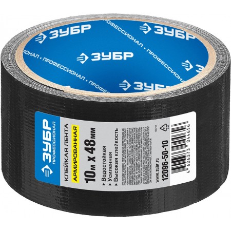 Лента армированная универсальная 48 мм, 10 м, чёрная, на тканевой основе ЗУБР Профессионал 12096-50-10
