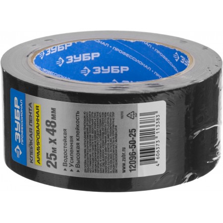 Лента армированная универсальная 48 мм, 25 м, чёрная, на тканевой основе ЗУБР Профессионал 12096-50-25