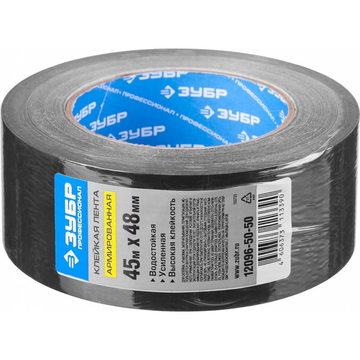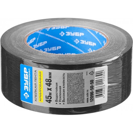 Лента армированная универсальная 48 мм, 45 м, чёрная, на тканевой основе ЗУБР Профессионал 12096-50-50