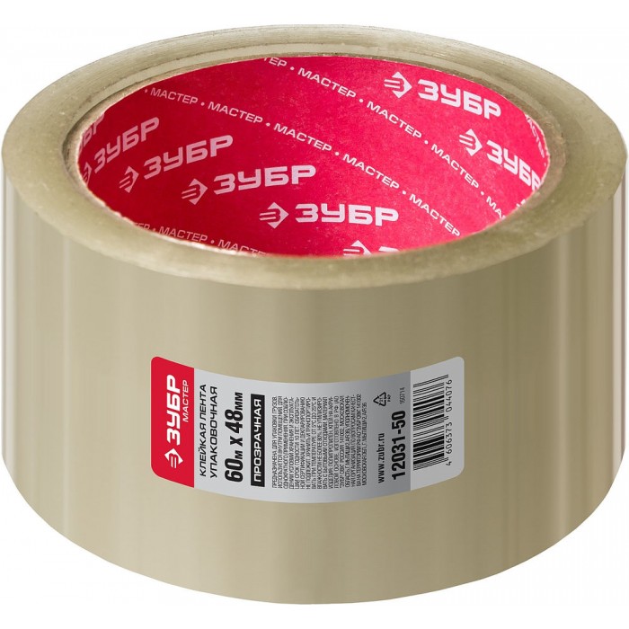 Лента упаковочная клейкая 48 мм, 60 м, 50 мкм, прозрачная ЗУБР 12031-50