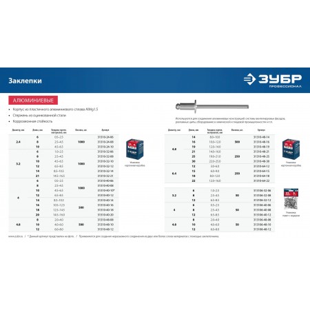 ЗУБР 4.8 x 14 мм, 500 шт, алюминиевые заклепки, Профессионал (31310-48-14)