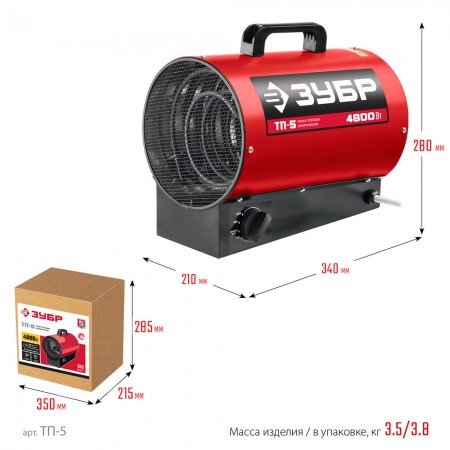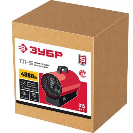 Компактный и легкий обогреватель в круглом корпусе для квартиры, загородного дома, мастерских гаражей и т.д. Большая площадь ТЭНов и эффективный обдув способствуют более быстрому нагреву помещения. Конструктивные меры безопасности (дополнительный защитный кожух, термопредохранитель, заземление корпуса) защищают Вас и изделие при нештатных ситуациях. Сделано в России ЗУБР - тепло и уют Вашего дома