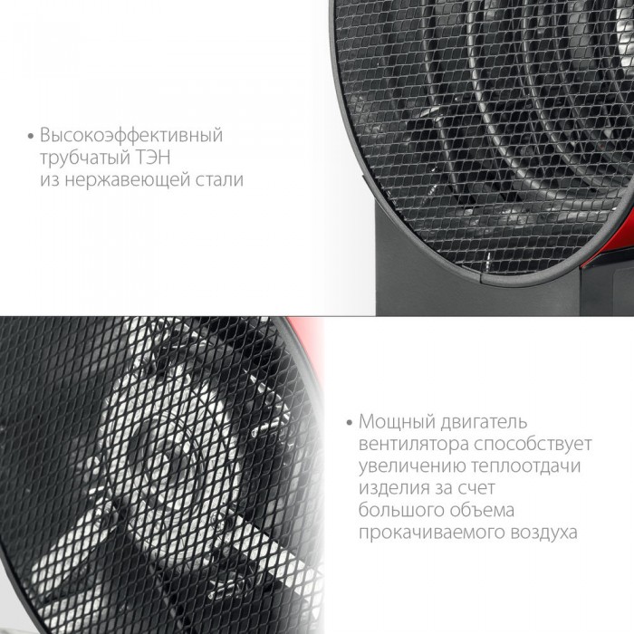 - Высокоэффективный трубчатый ТЭН из нержавеющей стали исключает сильный нагрев, благодаря чему не перегорает и пожаробезопасен, не выжигает кислород в помещении