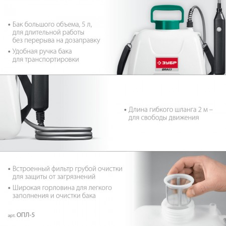 Удобный бак для жидкости объемом 5 л обеспечивает длительную работу без дозаправки