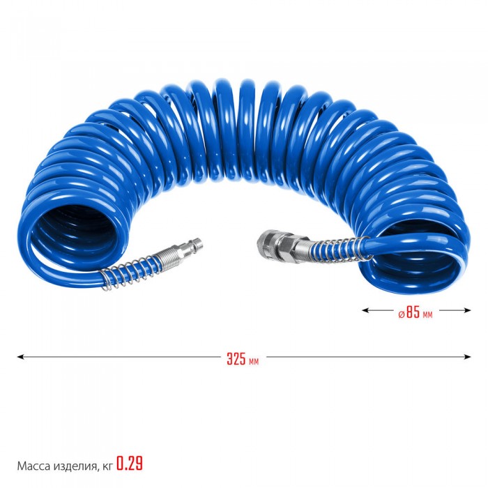 Шланг воздушный спиральный 5 м 6?8 мм 15 бар с фитингами рапид ЗУБР Профессионал 6473-05