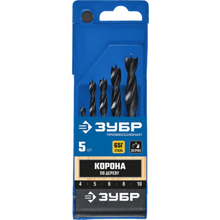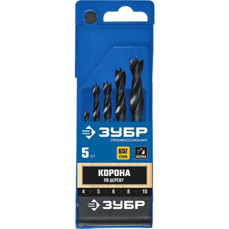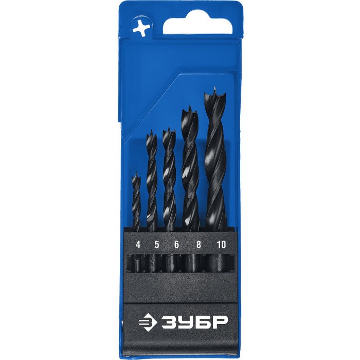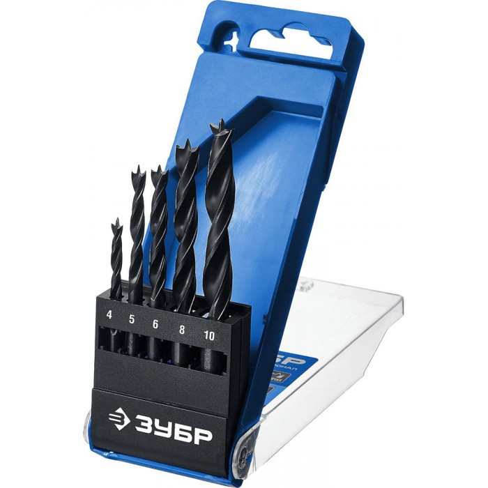Набор сверл спиральных по дереву 5 шт 4-5-6-8-10 мм М-образная заточка Профессионал ЗУБР 29421-H5