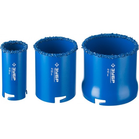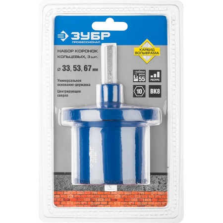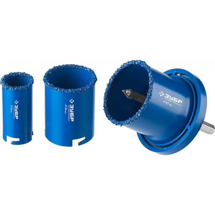 Набор применяется для получения ровных отверстий в облицовочных материалах, а также в ячеистом бетоне, кирпиче и гипсокартоне. Используется на дрелях и легких перфораторах в режиме безударного сверления.