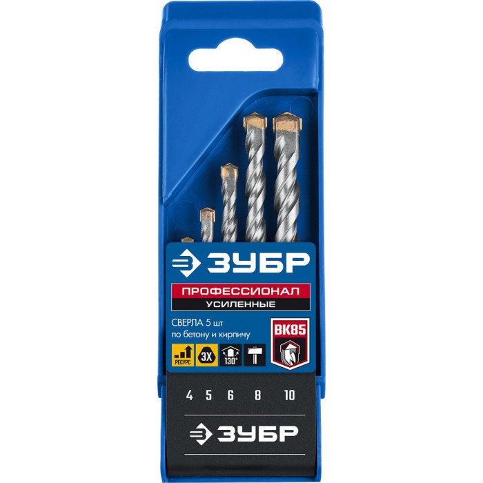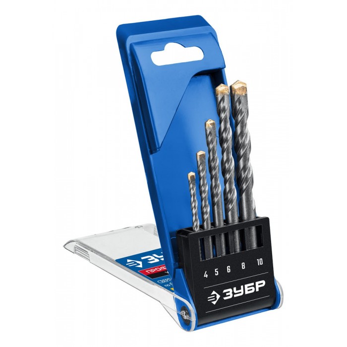 Набор сверл по бетону усиленных 5 шт: d 4–5–6–8–10 мм, трехгранный хвостовик ЗУБР Профессионал 2916-H5_z01