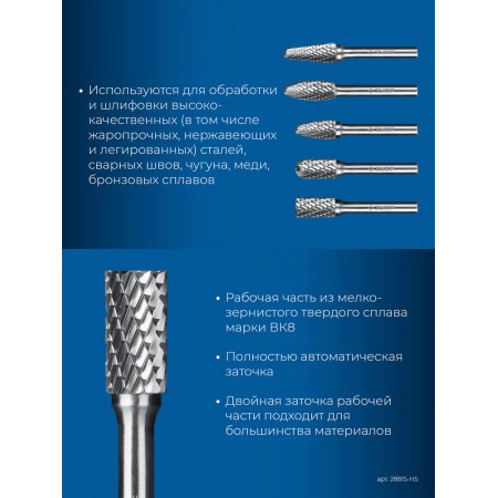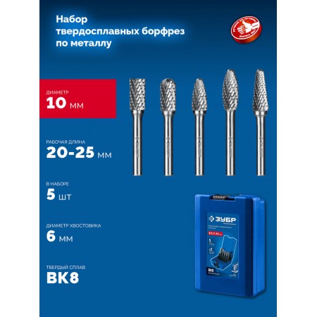 Набор борфрез твердосплавных 5 шт, хв-к 6 мм ЗУБР ПРОФЕССИОНАЛ 28815-H5