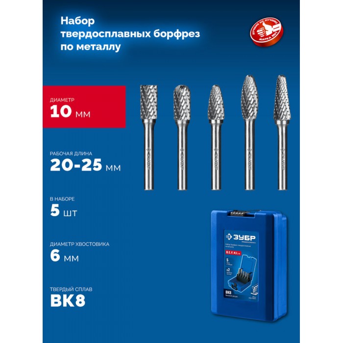 Твердосплавные борфрезы ЗУБР обеспечивают высокую производительность и могут использоваться для обработки различных материалов